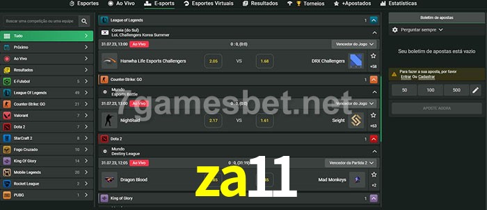 O za11 oferece uma grande seleção de opções de apostas em e-sports com probabilidades competitivas